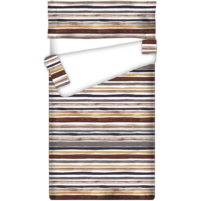 Prêt à Dormir TRACED BROWN, avec l'esprit classique des rayures mais avec une touche avant-gardiste, grâce à son trait d'aquarelle et sa disposition irrégulière...un classique rénové pour décorer votre chambre.